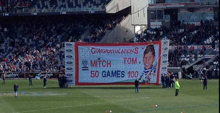 Before the game in 2012- Celebrating Mitch Duncan’s 50th game and Tom Hawkins 100th game